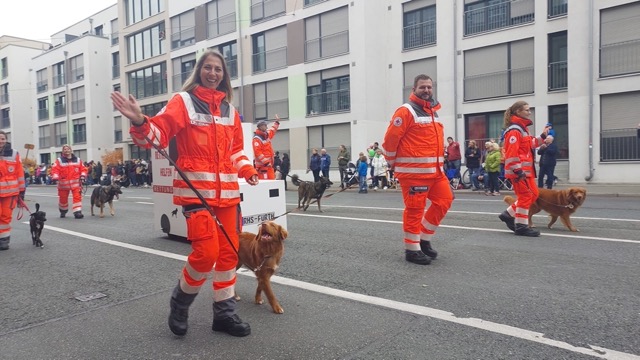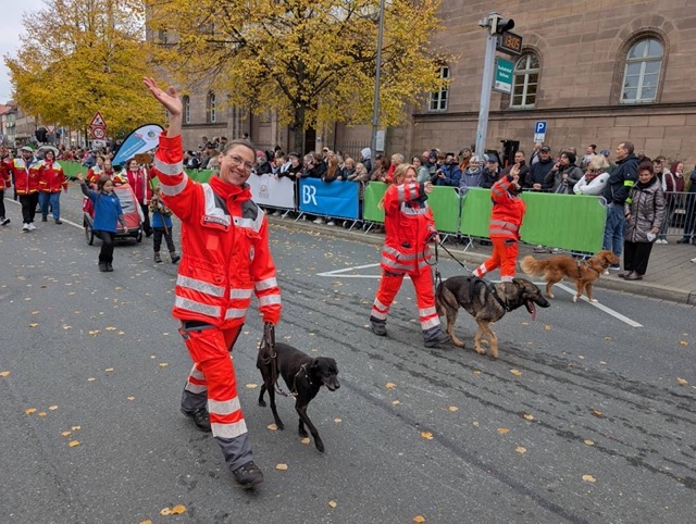Für uns ist der Festzug eine schöne Gelegenheit, uns als Staffel zu zeigen, mit den Menschen ins Gespräch zu kommen und auf die ehrenamtliche Rettungshundearbeit in Fürth aufmerksam zu machen. Danke an alle, die am Straßenrand gewunken, geklatscht und uns unterstützt haben! 🙏